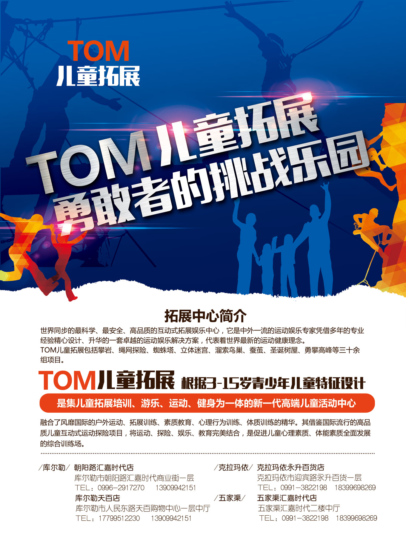 汤姆儿童以“玩中乐,乐中学”为核心理念,致力于发展儿童事业,将孩子的兴趣与教育培训深度结合,开展创新教育、儿童拓展训练、主题乐园及大型特种游乐项目。